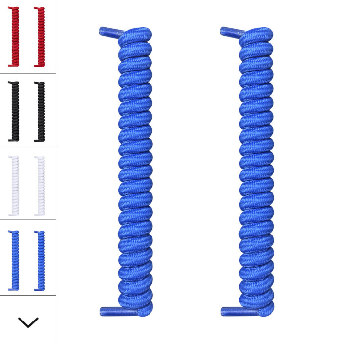 Es mag sich hier um blaue spiralförmige Schnürsenkel handeln, aber mit diesen elastischen Senkeln, die man nicht binden muss, wirst du nie wieder blaumachen müssen. Sie werden dich allerdings mit dem Fuß wippen lassen, denn sie haben absolut Groove.